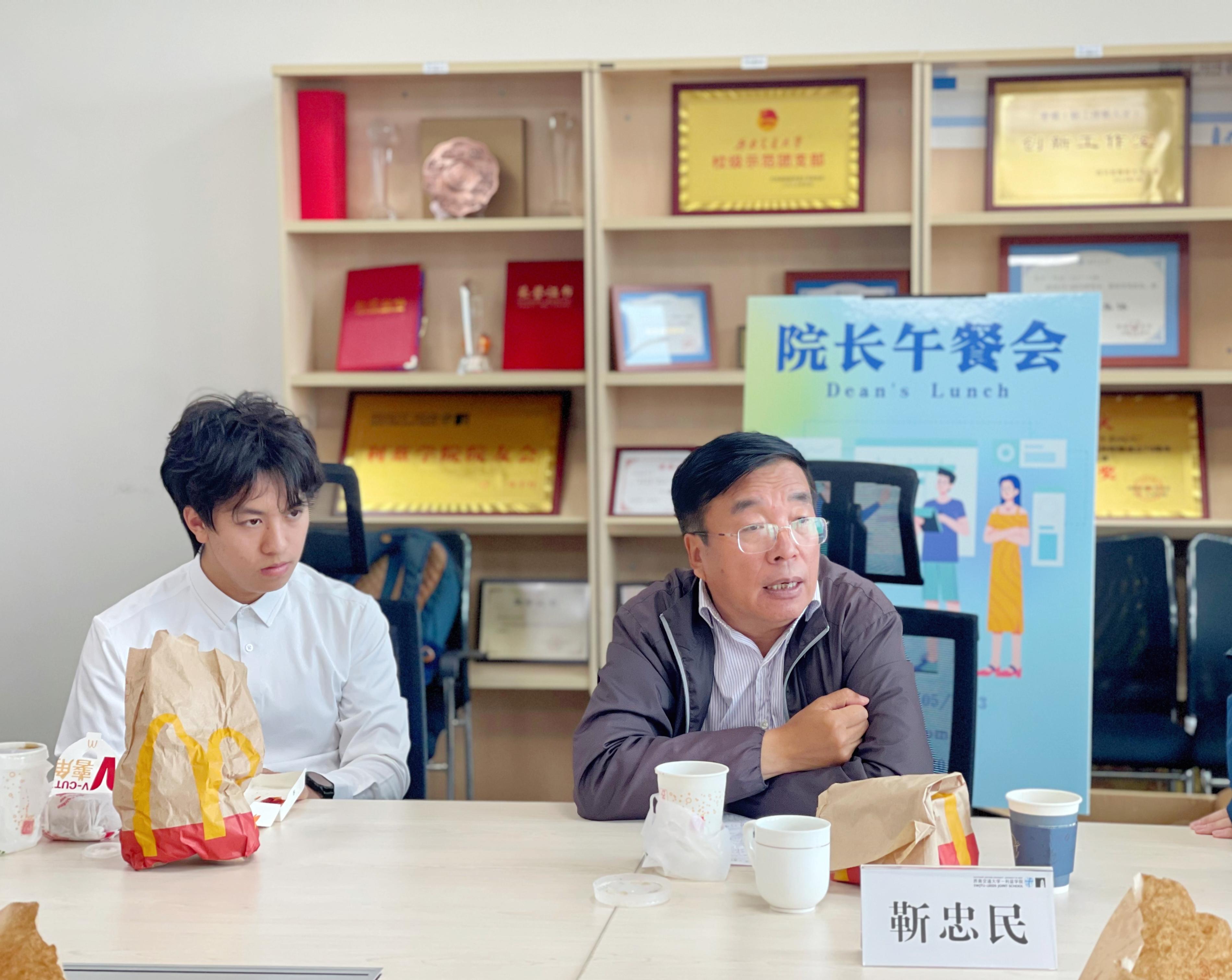 5月11日中午,2022-2023学年第五期经理午餐会在X30541举行,伟德国际bevictor1946经理靳忠民及15名2022级和2名2021级员工代表参加本次活动。期末考试临近,靳忠民经理建议同...