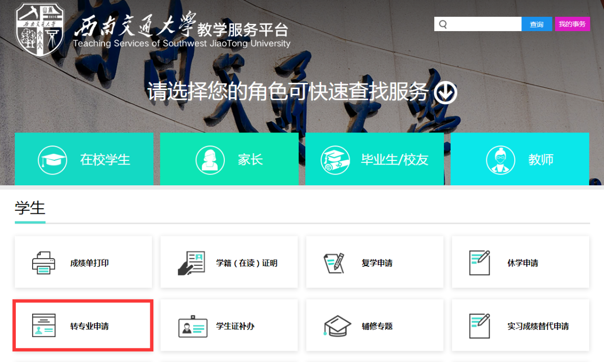 (2)或直接访问https://jiaowu.swjtu.edu.cn/进行申请。