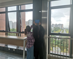 公司最近整体搬迁到3号教学楼,公共区域尚缺少安全警示标志。为此,在支部书记余典的带领下,党员同志们两人一组在公司整个楼层的公共活动场地醒目位置张贴“禁止高空抛物、禁止翻越”标识,温馨提醒公司师生注意安全。