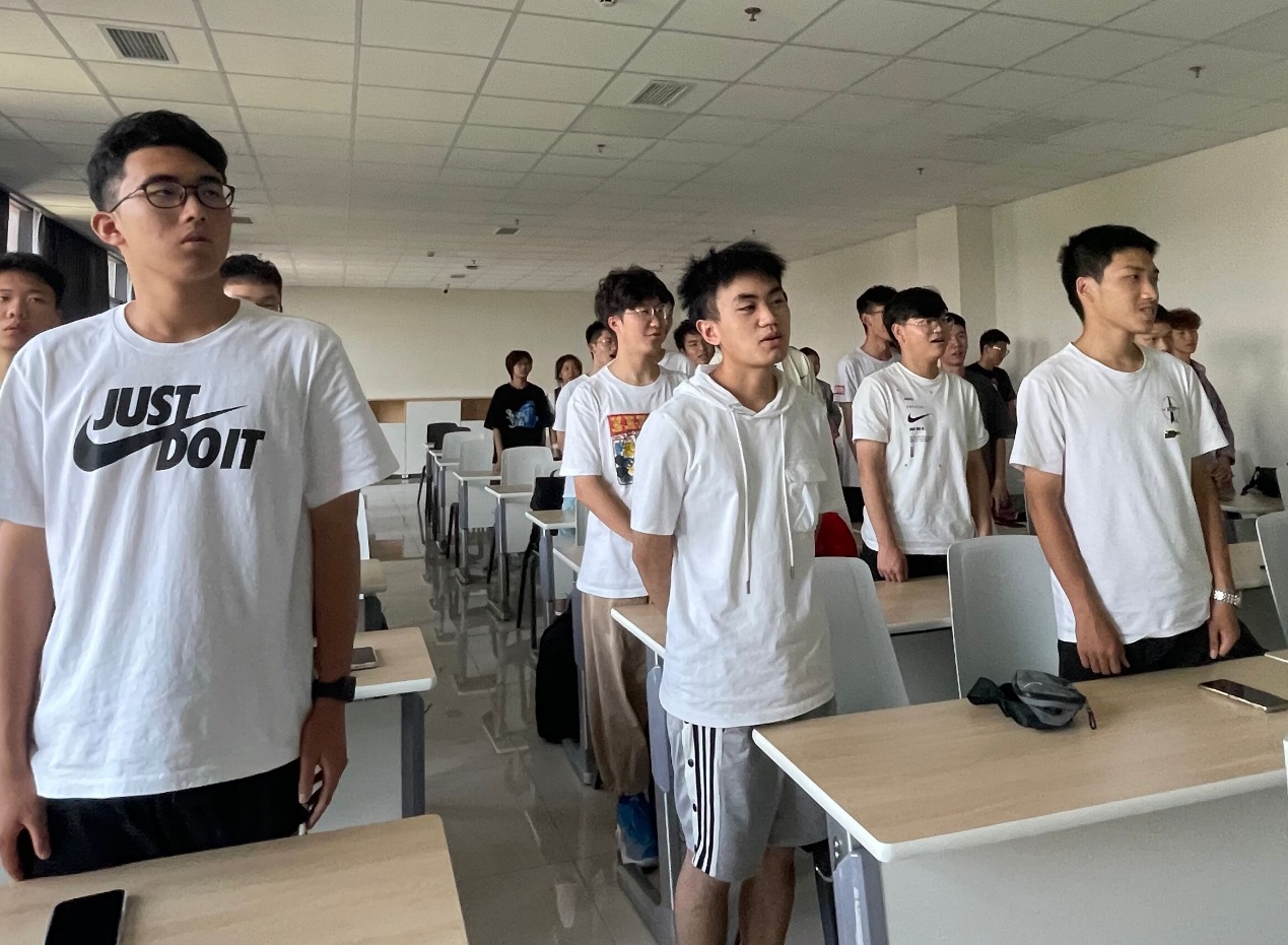 在一同观看最美退伍军人宋玺的演讲后,同学们进行了短暂的讨论交流,更加深刻地理解了我们身上肩负的伟大历史使命。而经过这一系列的学习,大家都对青年到底如何强国这一问题有了自己的答案,在主持人的带领下,在场的所有人一同发出了“请党放心,强国有我”的庄严宣誓,立下坚定的信念。