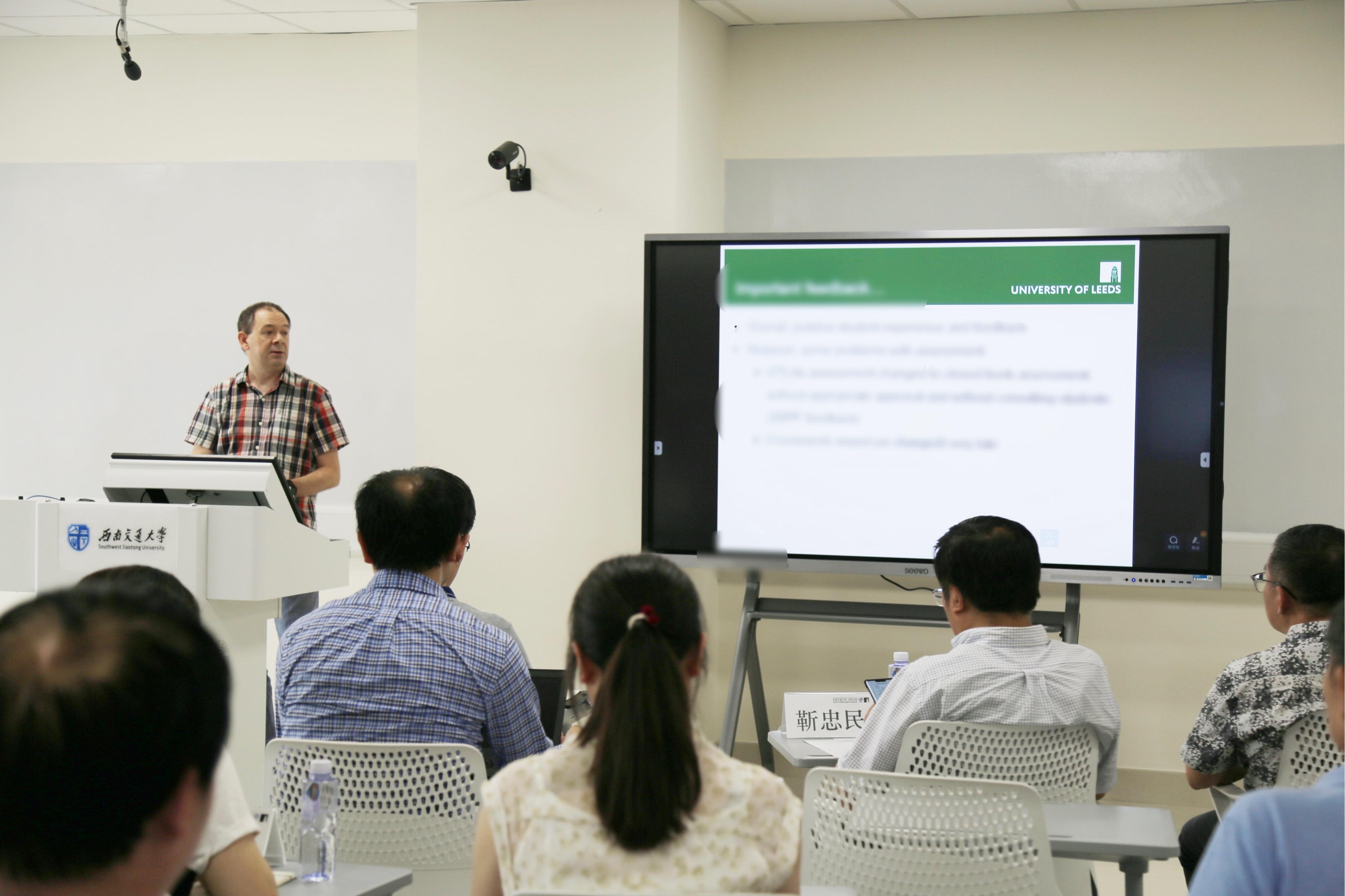 英方副经理Darius Wanatowski介绍了本学期利兹大学教师参与教学的情况,就课程教学、中英双方沟通等提出建议。在谈及疫情对伟德国际bevictor1946教学带来的挑战时,他对中英双方教师克服困难并顺利完成教学任务给予了高度赞扬。