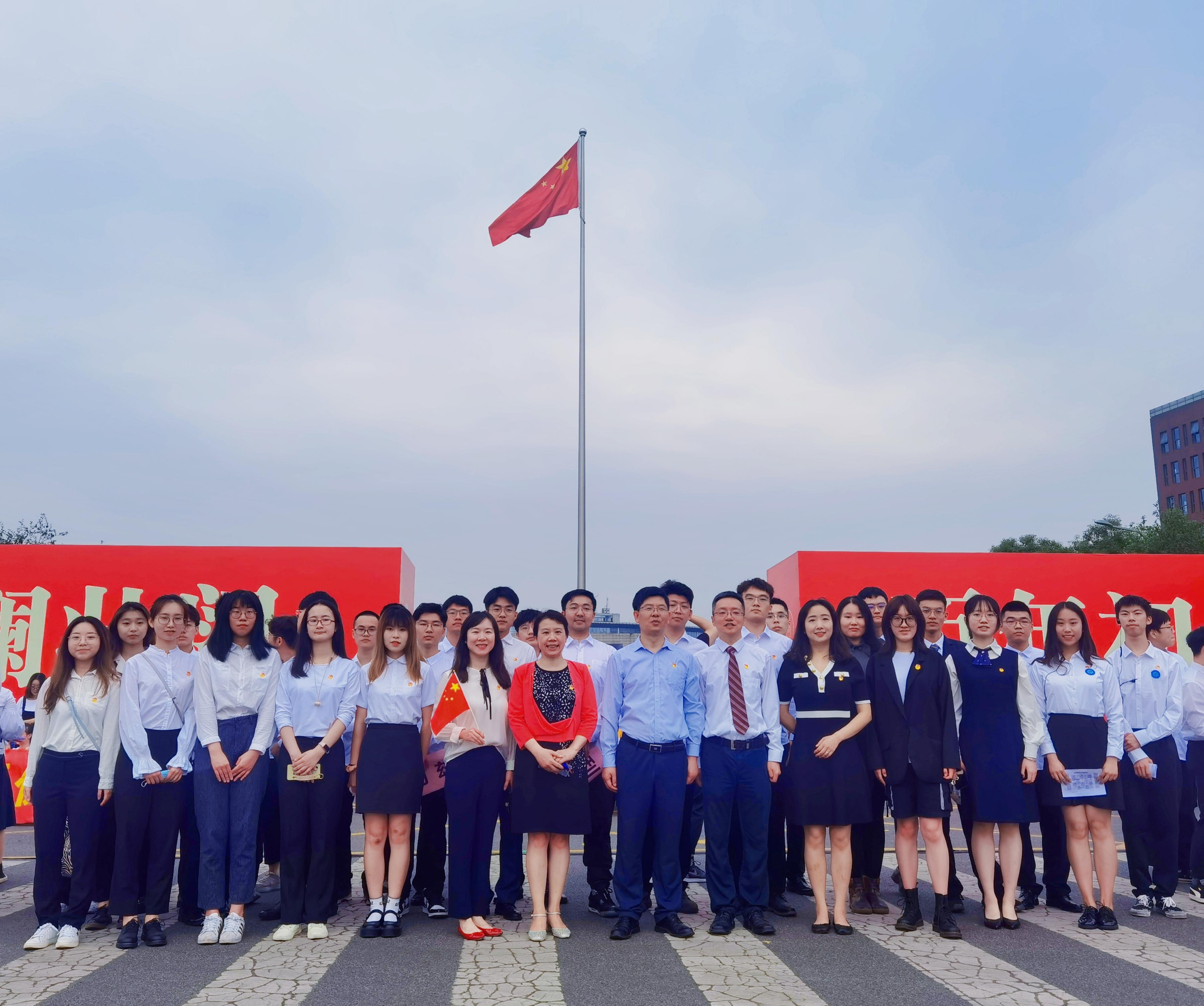 2021年7月1日上午7时30分,伟德国际bevictor1946党总支书记江久文、副书记赵舵、副经理朱焱带领师生党员、发展对象、入党积极分子共计34人在犀浦校区国旗台参加“庆祝中国共产党成立100周年”升旗仪式。