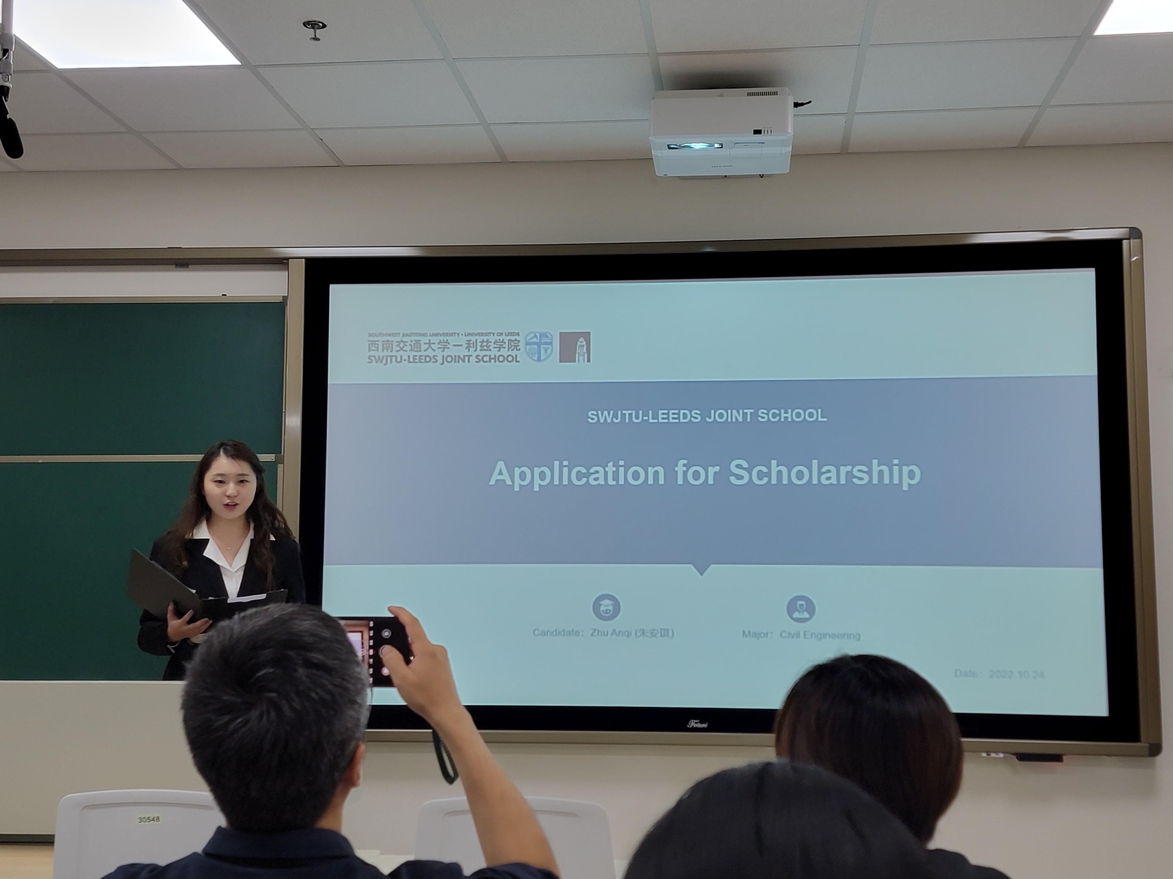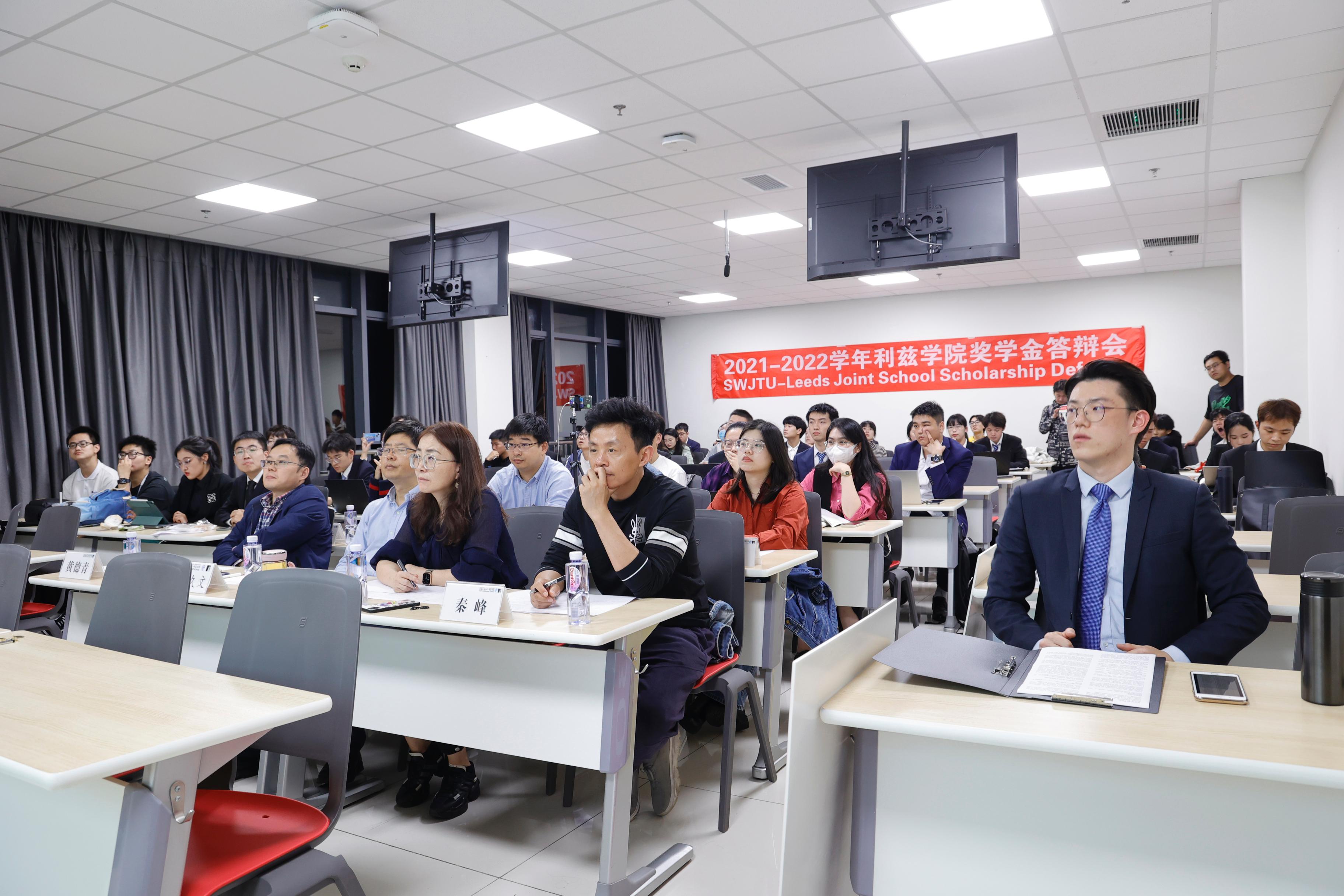 2022年10月24日晚18时30分,2021-2022学年伟德国际bevictor1946奖学金答辩在X30548和X30549两个教室顺利召开,本次答辩设立4个分会场教室,200余名同学在通过实况直播观摩学习。公司员工奖励评审小组全体成员、专业公司教师代表和公司管理团队代表作为评委全程参与共计46名候选人的答辩。