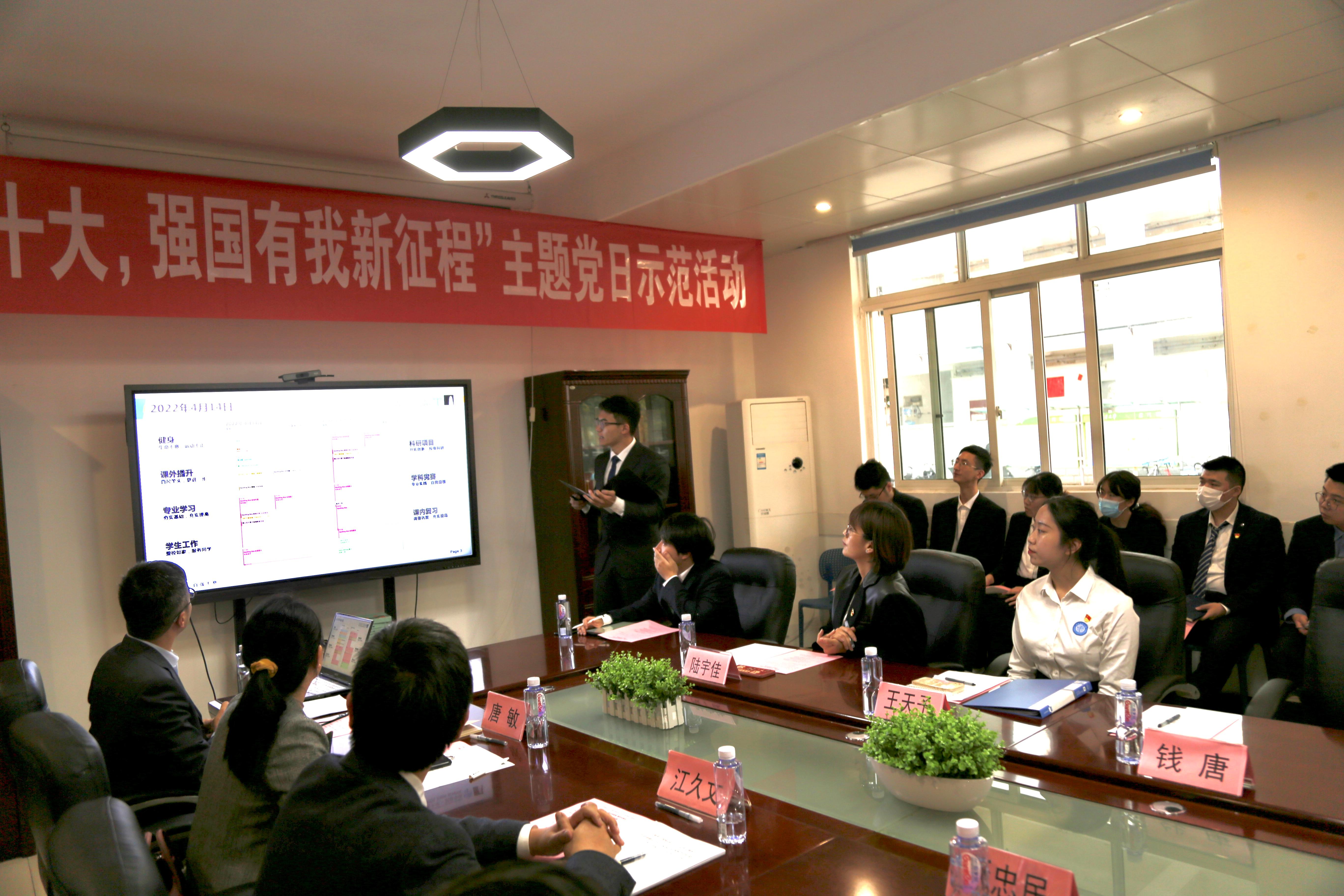 毕业班员工党员王天予通过分享自己在交大的学习和参与员工工作的经历,展现了青年学子心系祖国、投身社会主义建设的奋进风采;毕业班党员发展对象钱唐则通过对自己老员工活的全面回顾,在感谢公司提供的优质培养环境和高水平教师团队的同时,表达了自己对祖国的热爱和立志报国的决心和信心。