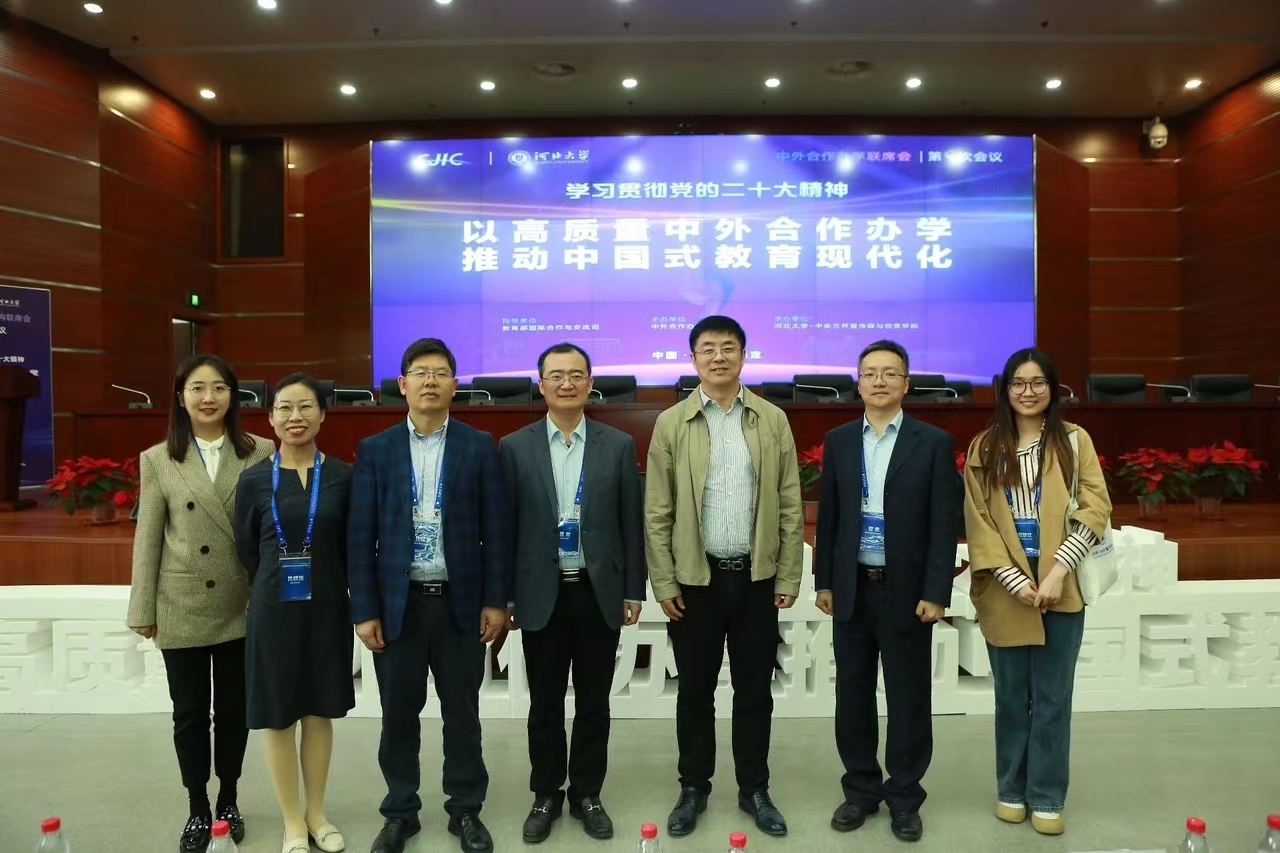 4月25至27日,中外合作办学联席会在河北保定召开第九次全体会员大会。本次会议由教育部国际合作与交流司指导、中外合作办学联席会主办、河北大学-中央兰开夏传媒与创意公司承办。会议主题是深入学习宣传贯彻党的二十大精神,加快推进教育现代化、建设教育强国、办好人民满意的教育,加强中外合作办公司校间的交流互鉴,促进高等公司中外合作办学高质量发展,更好地发挥中外合作办学在推进中国式教育现代化进程中的作用。