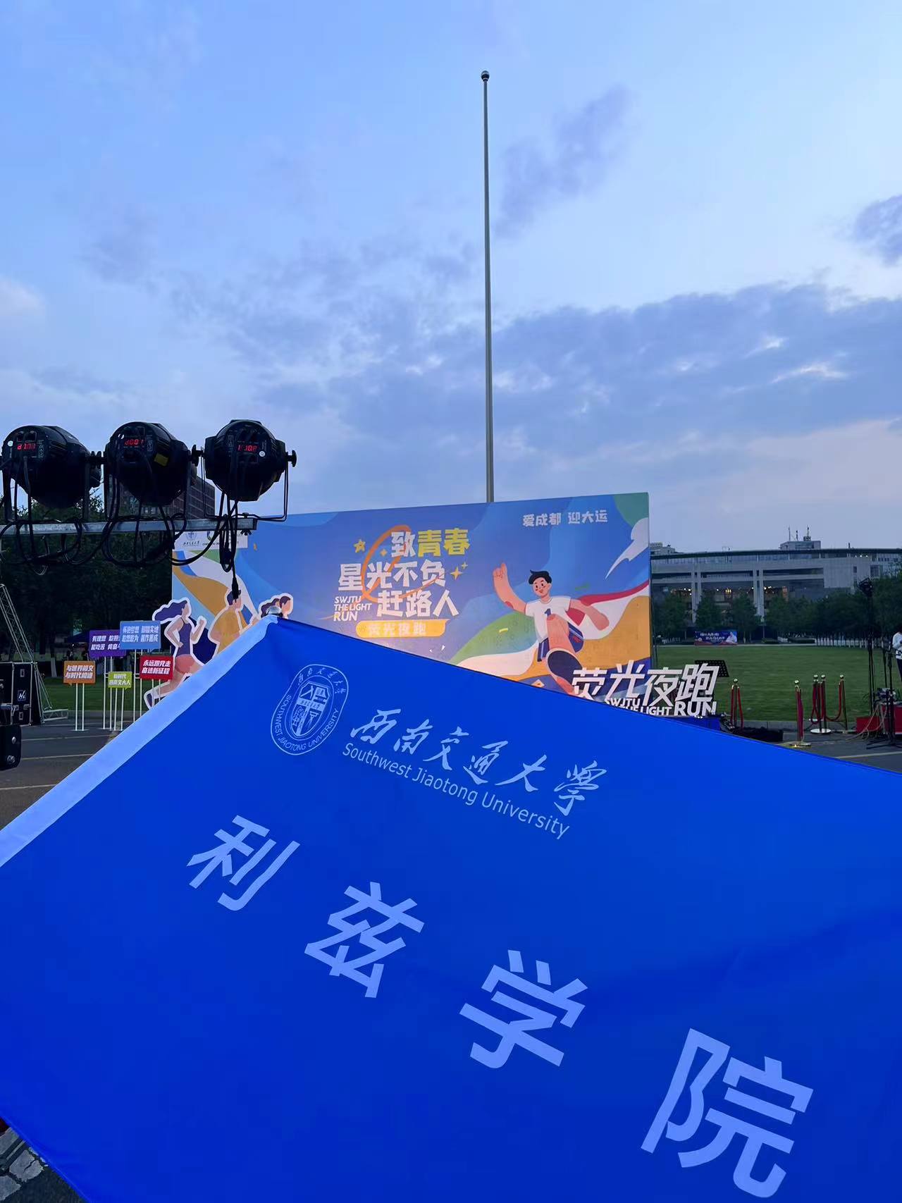 5月4日晚上,公司综合素质发展中心组织青年员工参加“致青春 星光不负赶路人”主题荧光夜跑活动,在南门、西门和国旗台三个打卡地点参与答题游戏,完成3公里环校荧光夜跑。