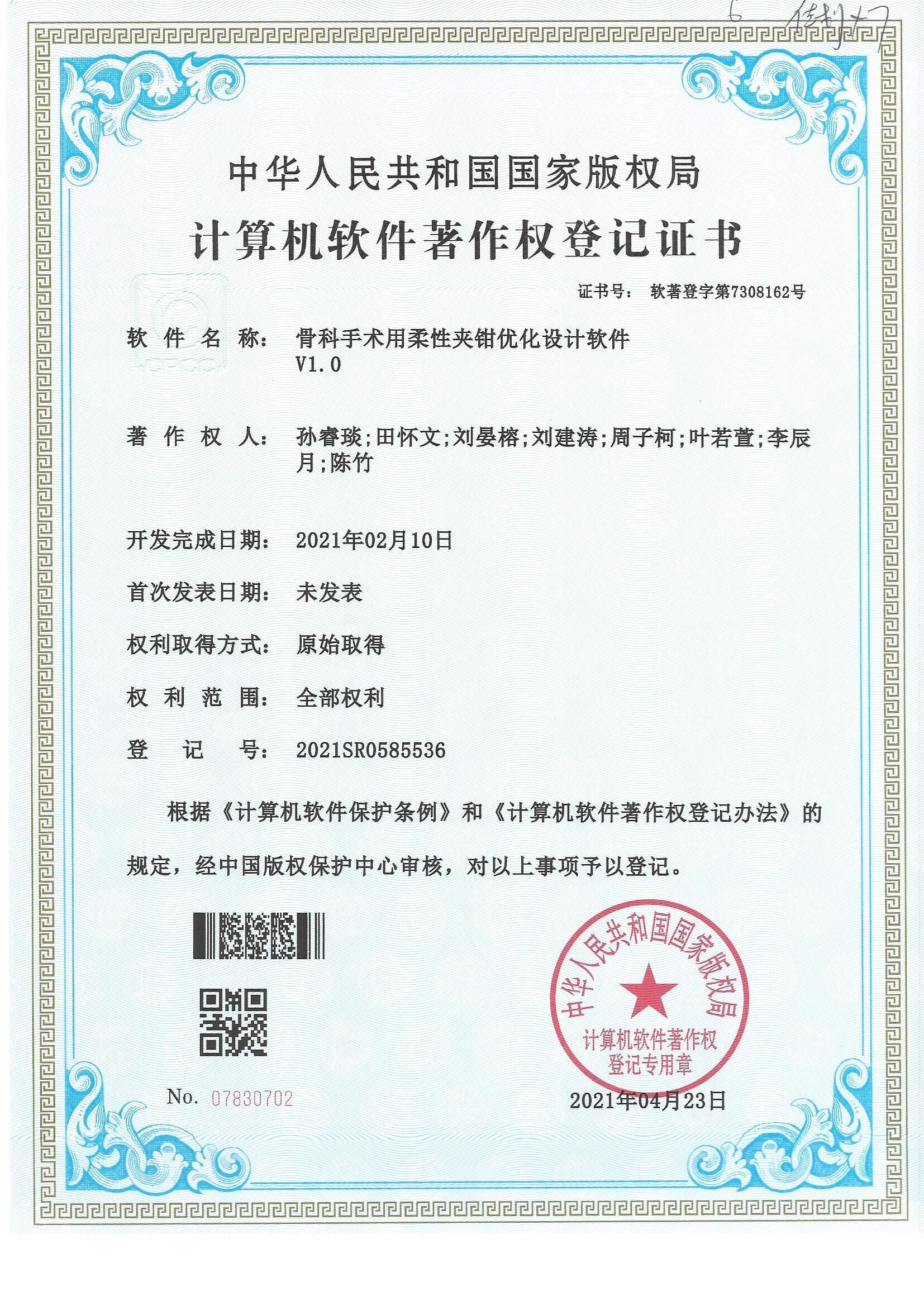 “教学的意旨并非知识的累积,而是心智上的能力的发育。”在做好教学工作基础上,刘老师积极指导伟德国际bevictor1946员工开展SRTP、启航计划等科创活动,并多次开展科创活动讲座。目前,他已指导SRTP项目10余项(40余人),其中国创项目5项(2项以优秀结题);指导启航计划近10人。在他的指导下,同学们积攒了丰富的科研和学术经历,提升了他们的问题提出、分析和解决的综合能力。多达20余位同学们在取得学术论文、发明专利、软件著作权等知识产权(部分成果见图3-6)的同时,顺利进入帝国理工公司、约翰霍普金斯大学、哈尔滨工业大学、浙江大学等国内外知名高校深造(直博或读研),其学习的方向多与科创活动内容一致。此外,刘老师课题组还吸纳了多名对计算力学和工业CAE软件研制方向感兴趣的员工,参与实际的科研项目和读研学习,并取得了丰硕的成果。