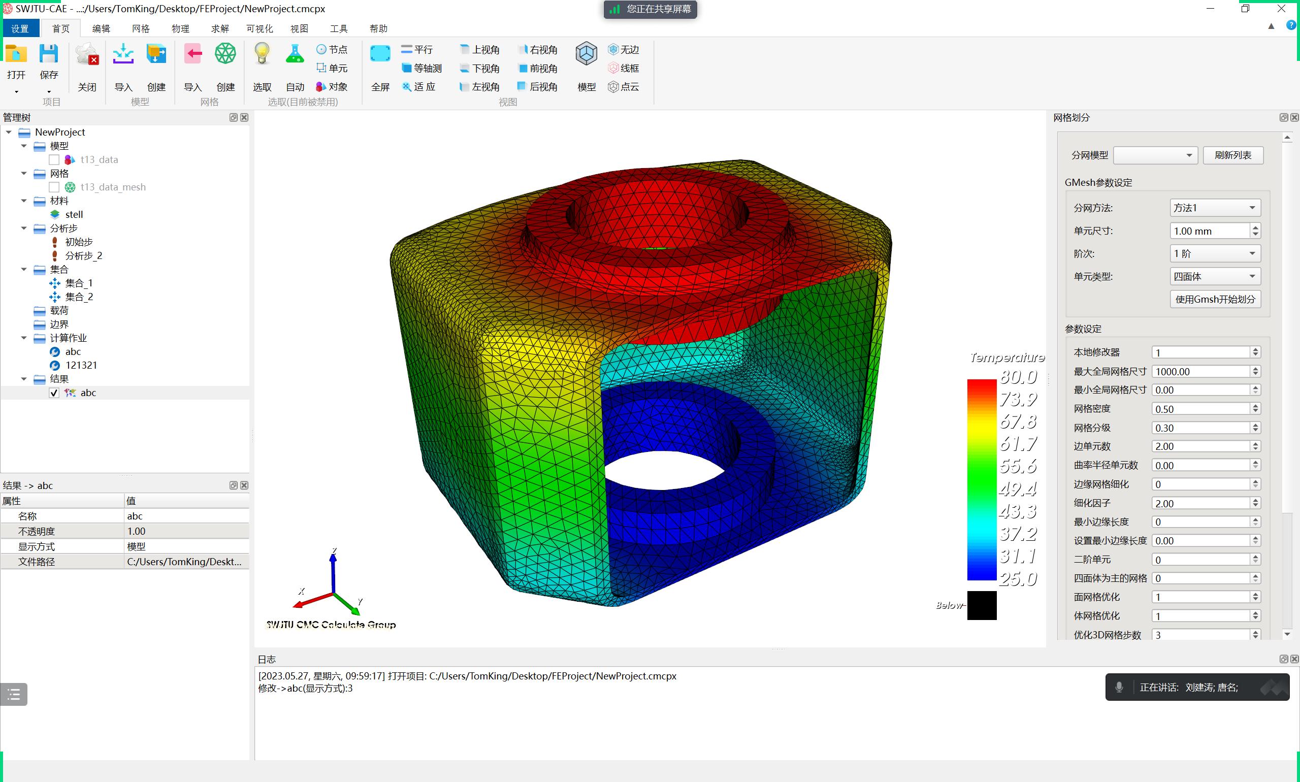 图1 研究成果用于FEMA教学 图2 自研教学CAE软件SWJUT-CAE